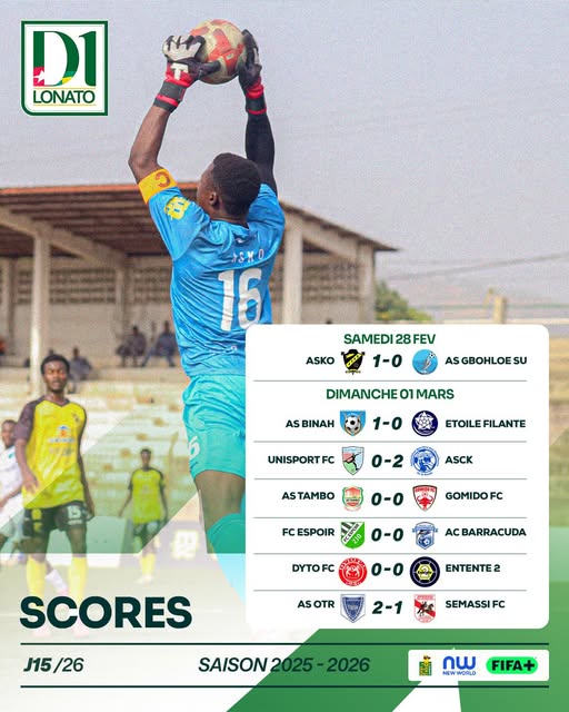 L’AS Binah de Pagouda a surpris l’Etoile Filante de Lomé sur la plus petite des marges. Victoire en déplacement de l’ASCK (2-0) devant Unisport de Sokode.