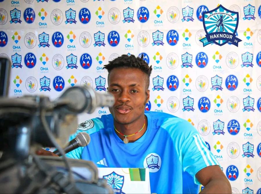 Jules Aziamale, capitaine du CDF Haknour devant la presse