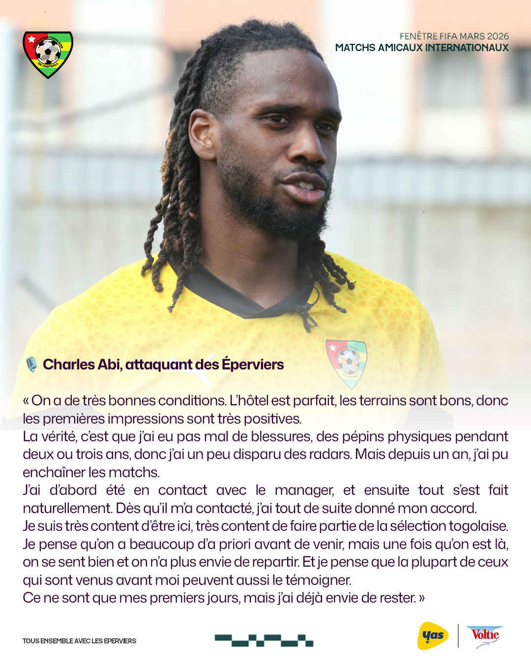 Charles Abi est le nouveau visage de la ligne offensive des Eperviers du Togo. L’ancien attaquant de Saint-Etiennes a donné son accord pour défendre les couleurs du Togo.